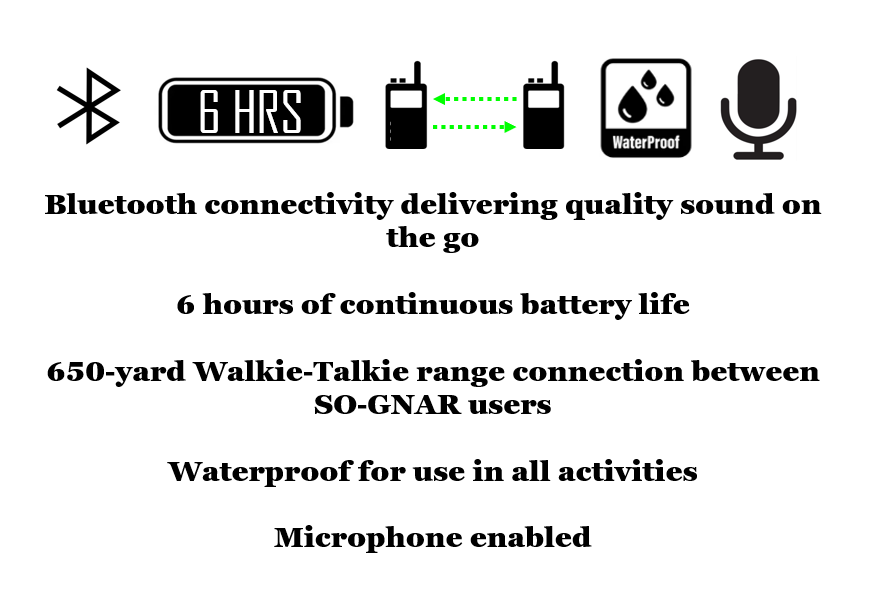 Let’s face it when participating in action sports and outdoor activities nobody wants to wear headphones or ear buds they fall out you get wrapped up in wires and it’s just annoying. Ear buds and pods can also throw off balance and equilibrium and can also be dangerous in crowded streets. Listening to music freely without impending your ears allows you to hear cars approaching and honking and people trying to get your attention. Being able to hear ambient noise around while enjoying music and or instruction helps not only with safety but performance as well. The patented so-gnar system allows coaching capabilities with music interrupt whether you have it fastened into a life jacket, snow jacket or any gear of the users choice. If you don’t like the So-Gnar gear and apparel that all comes with the lock mount, no problem for an extra charge you can send us your apparel, lifejacket, backpack, cooler top! You name it we can install our react-gnar speaker into it. Never imitating always innovating, the future is now courtesy of so-gnar sounds.